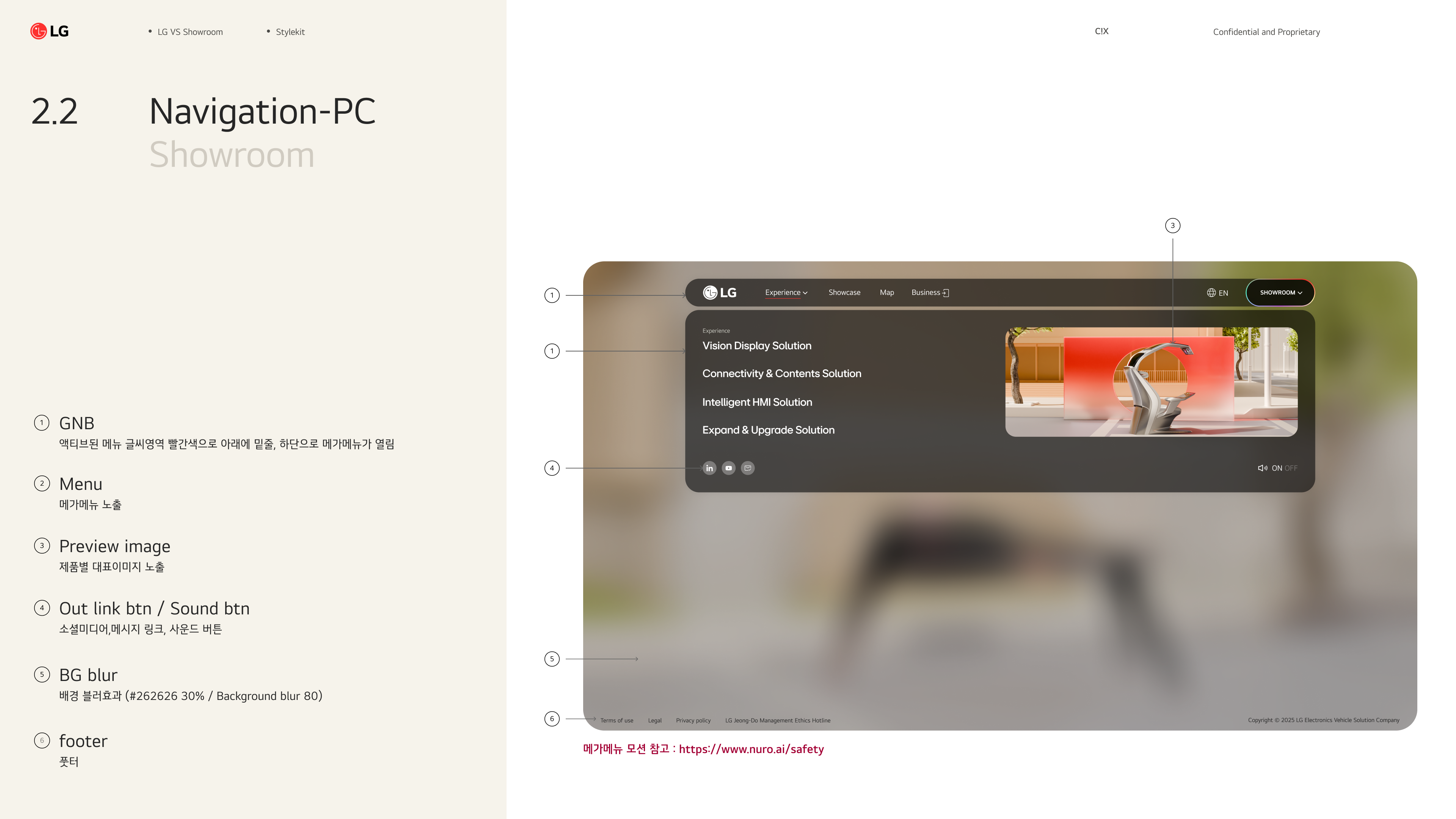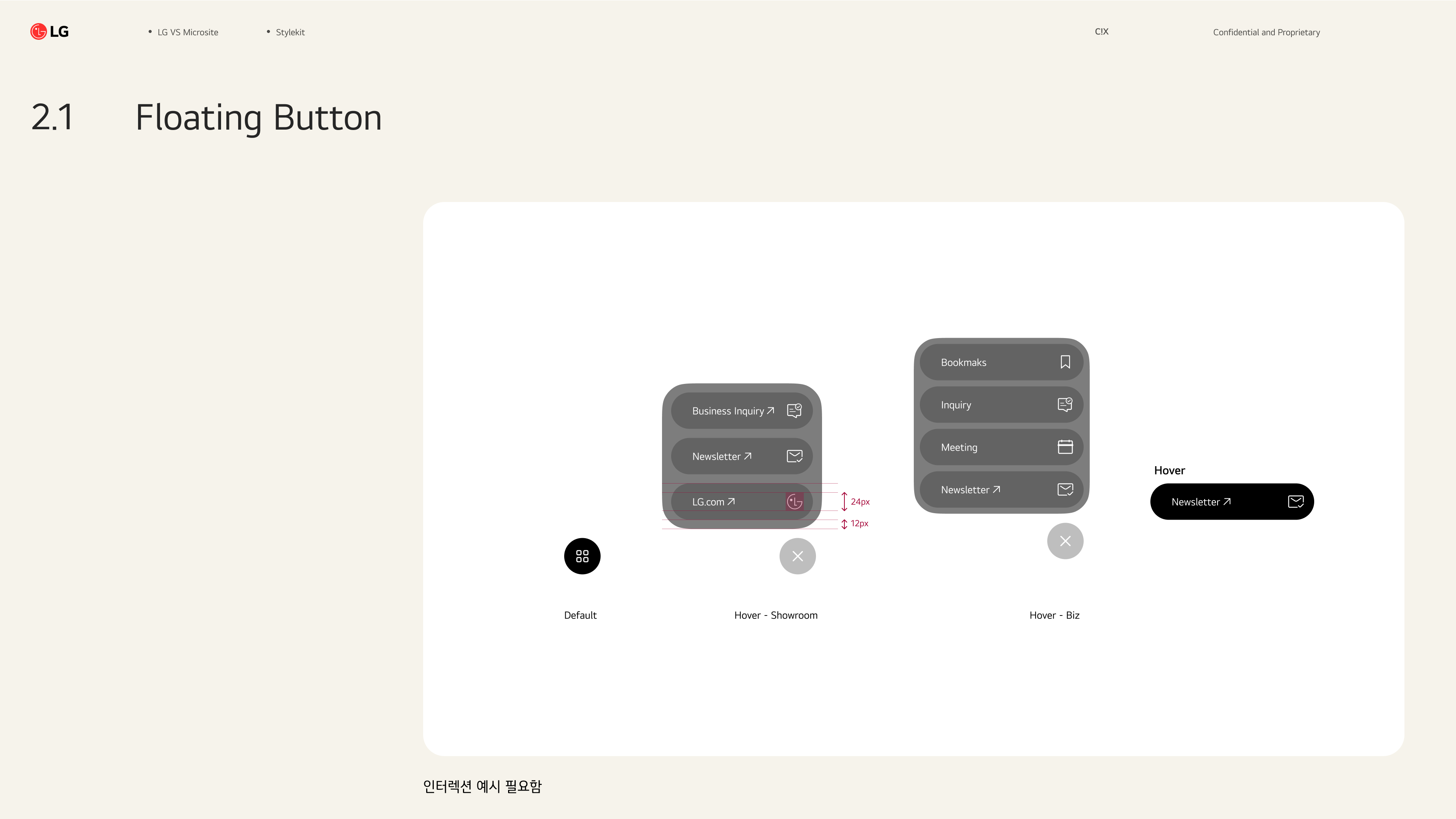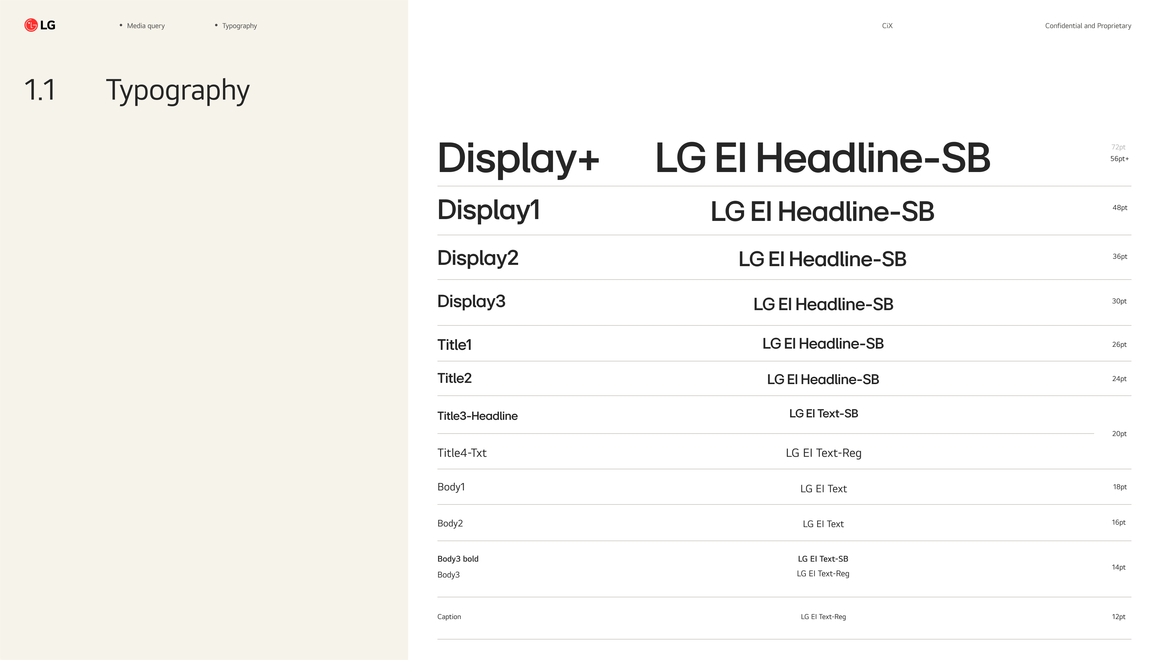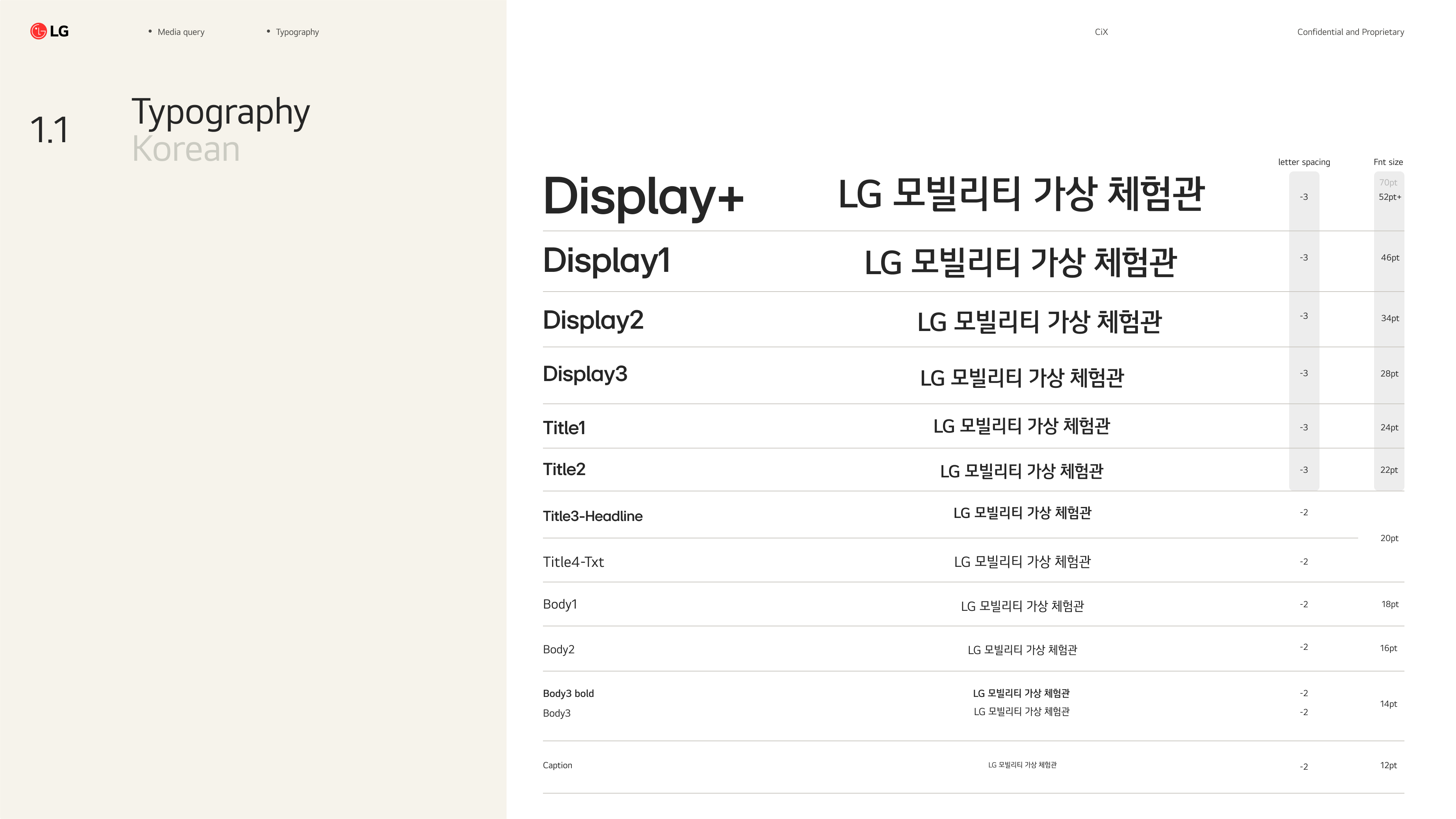 LG의 브랜드 가이드 색상과 글꼴 패밀리를 기반으로 기본 색상과 디자인 시스템을 정의했습니다. UI는 유리 효과와 라운드 타입으로 반영했습니다.