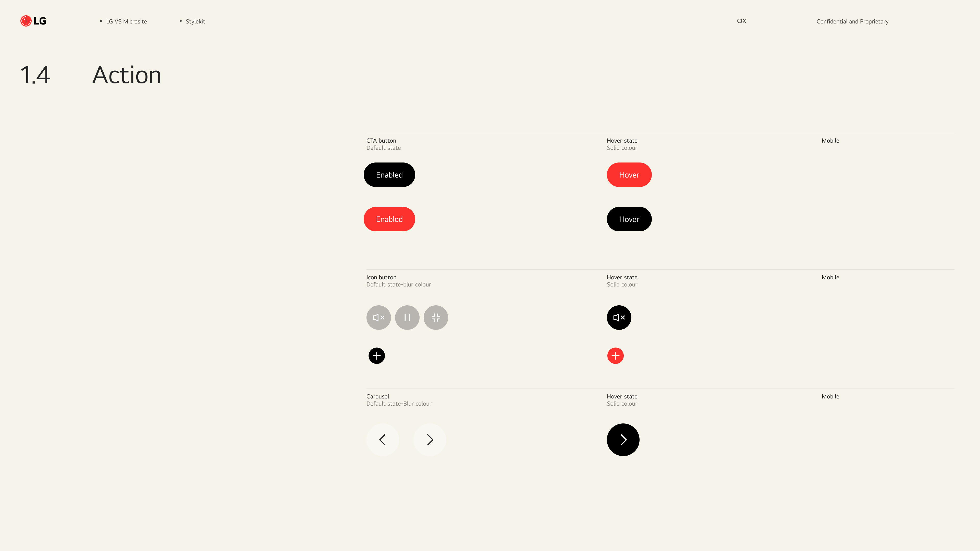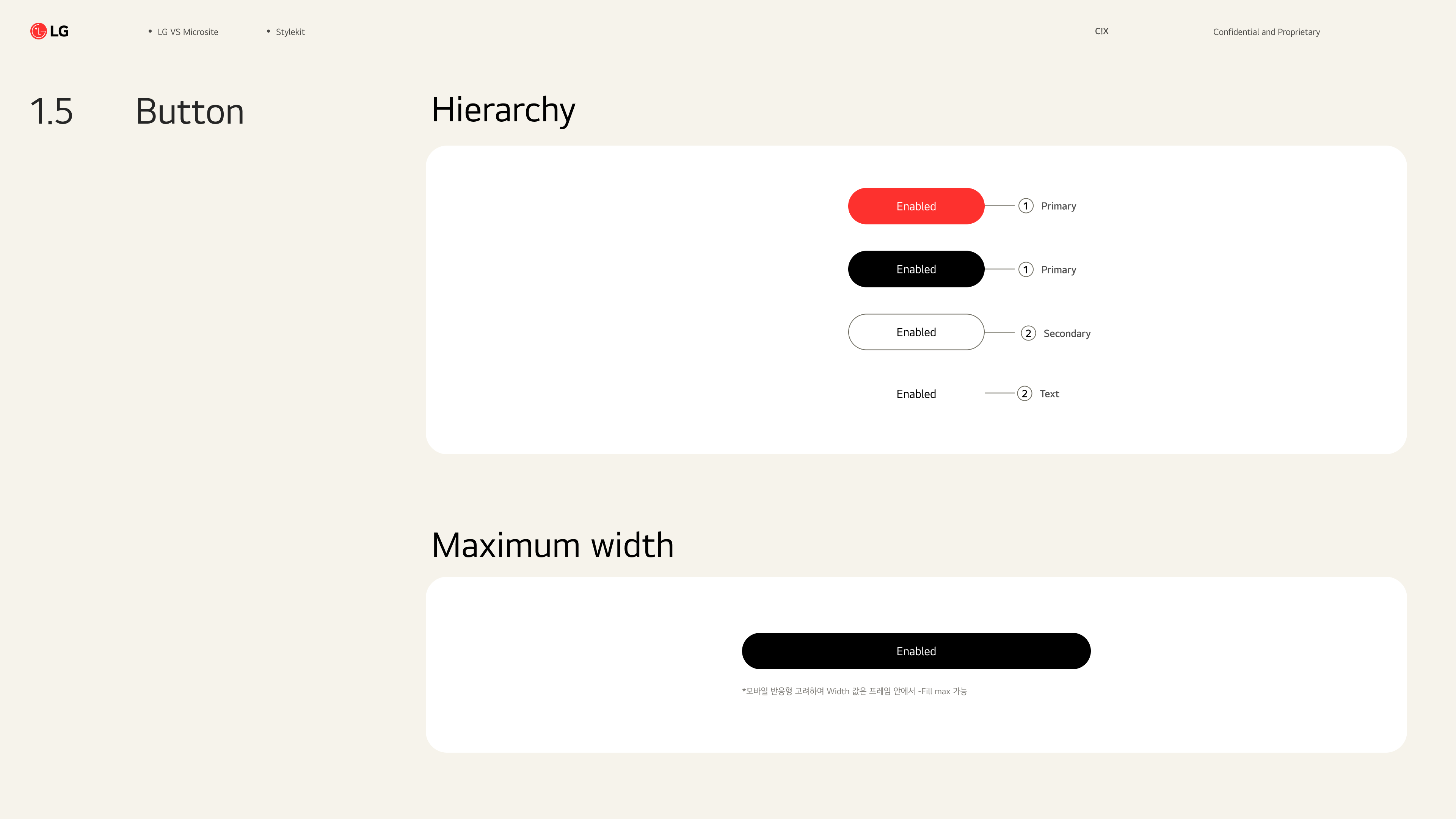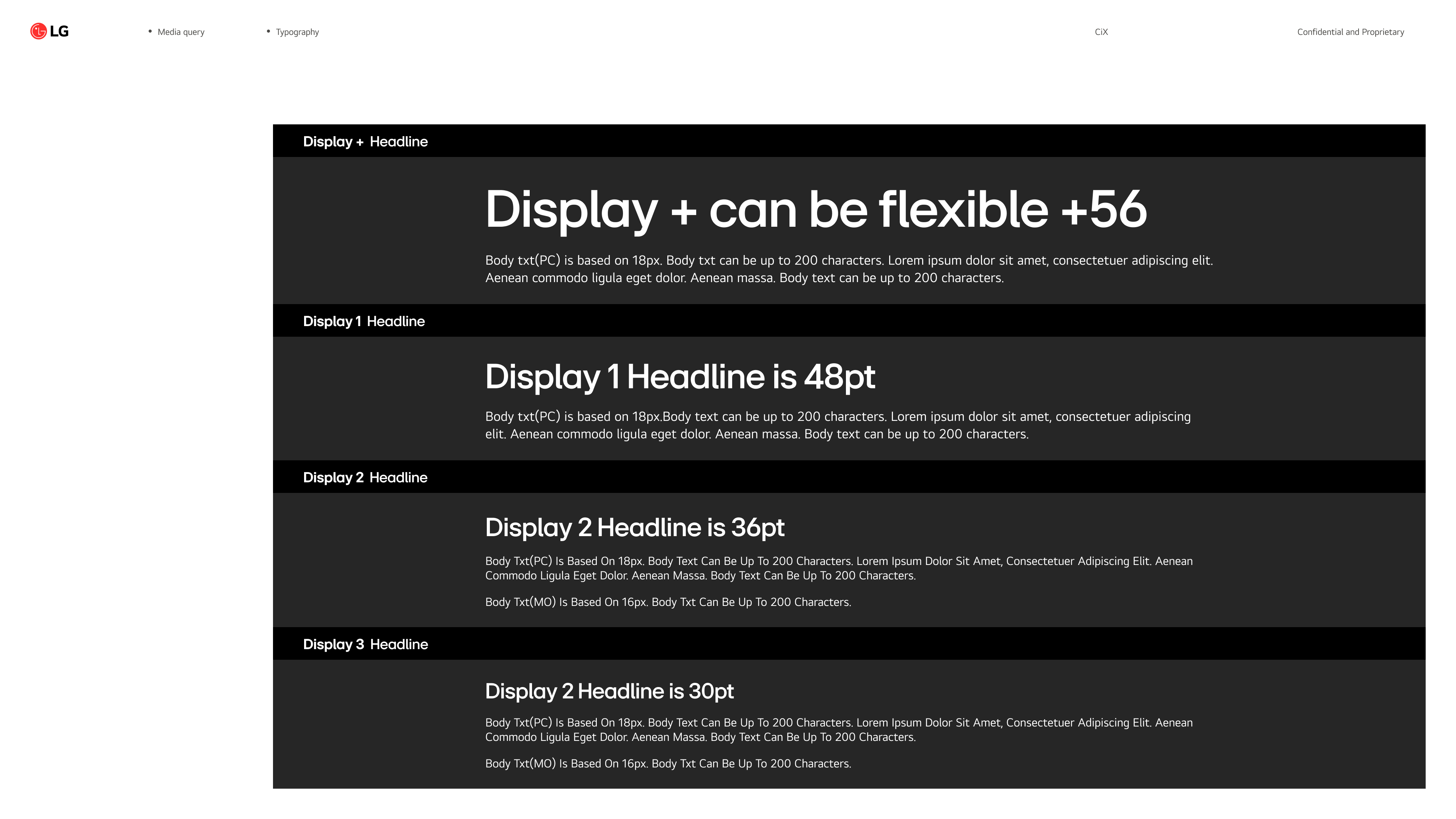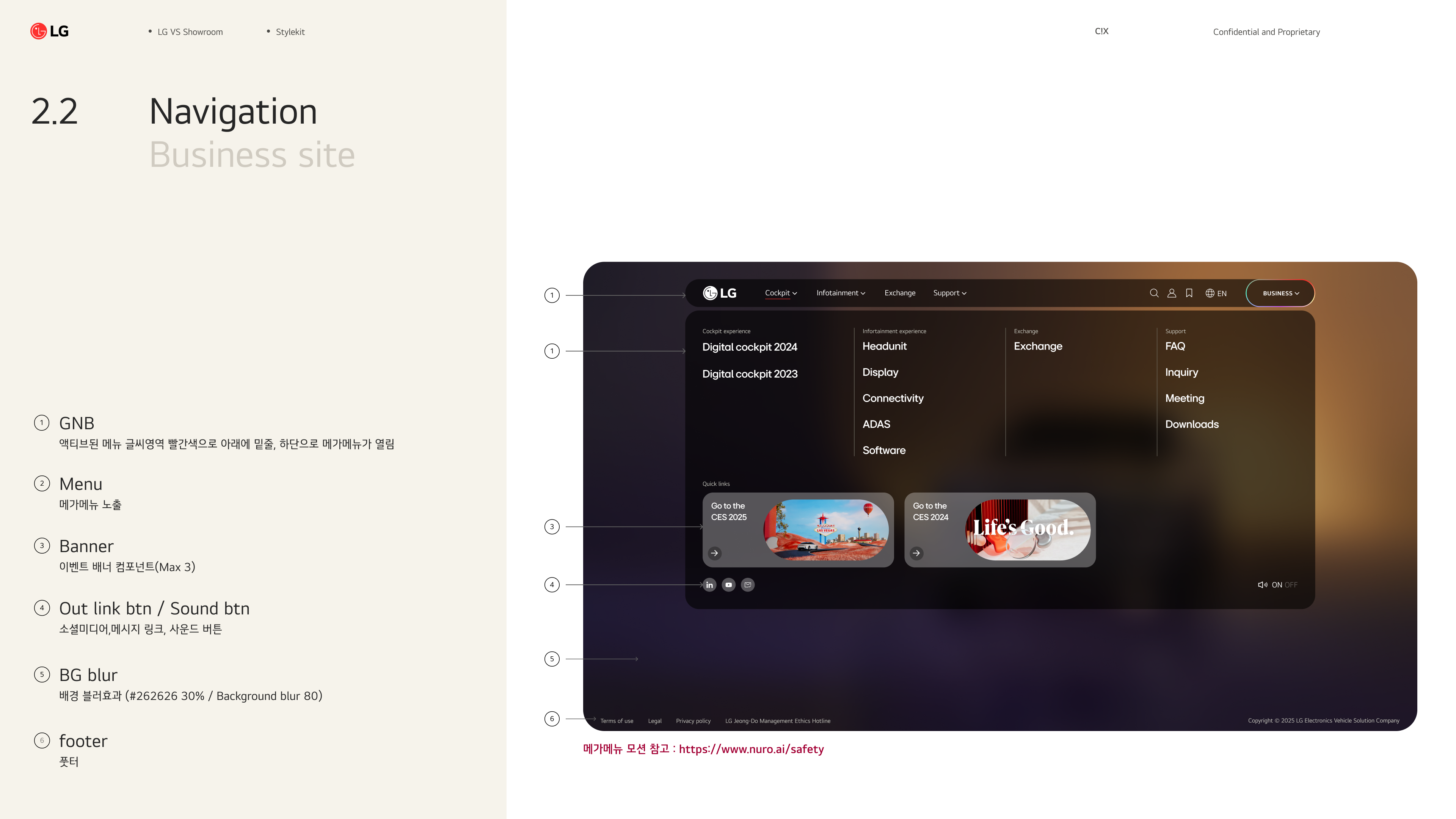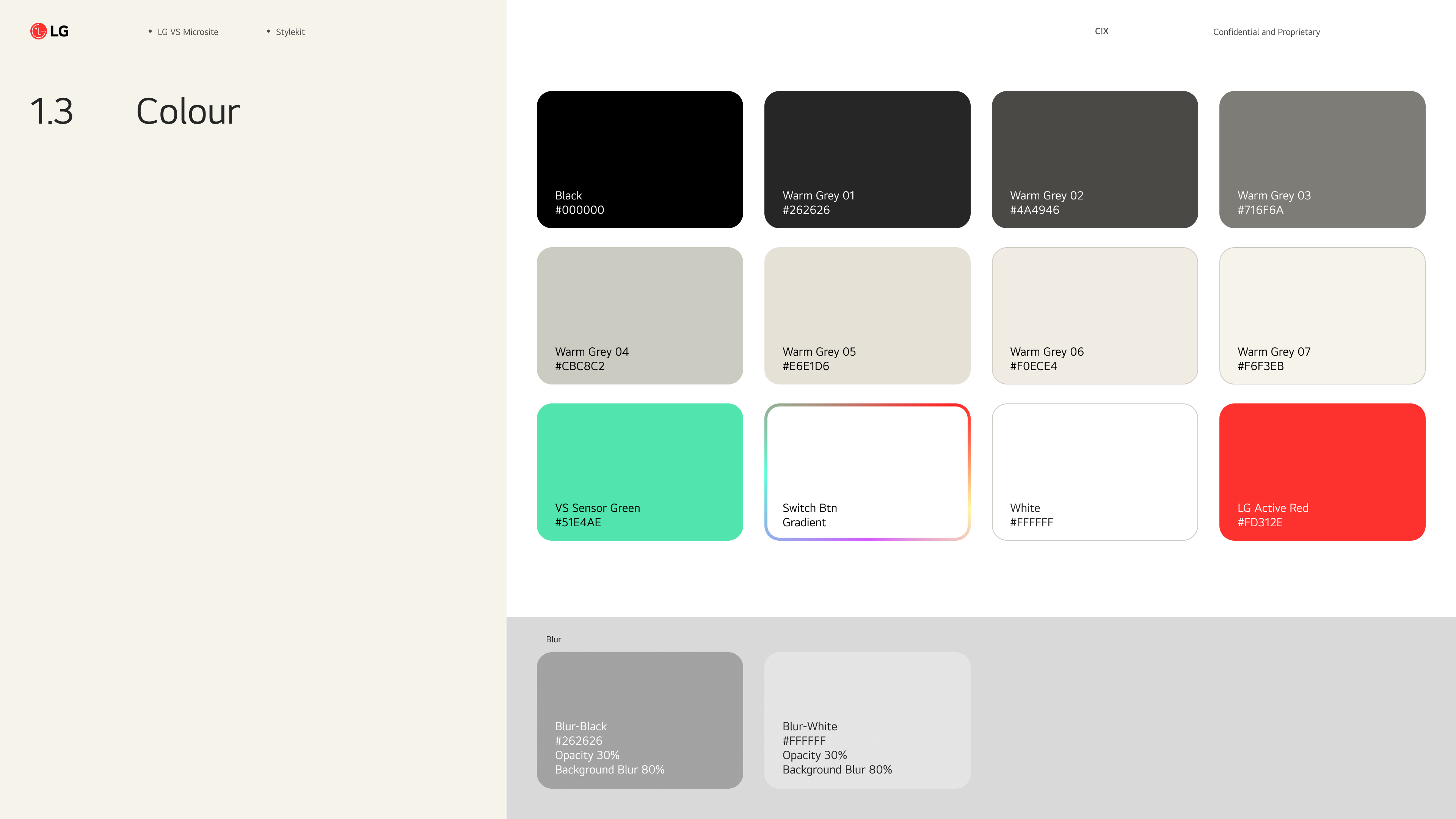 LG의 브랜드 가이드 색상과 글꼴 패밀리를 기반으로 기본 색상과 디자인 시스템을 정의했습니다. UI는 유리 효과와 라운드 타입으로 반영했습니다.
