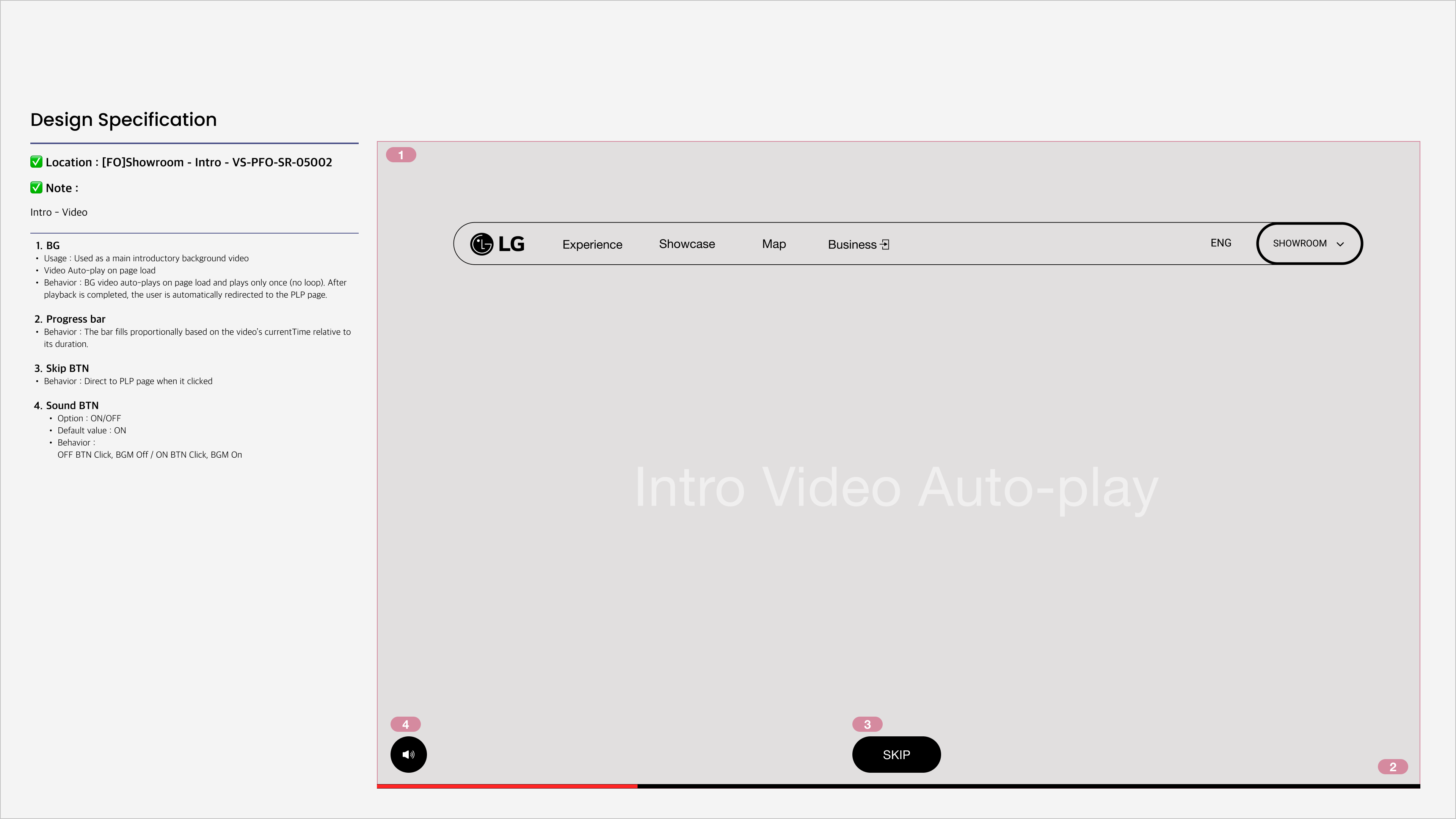 제품 탐색 및 카테고리 전환할 때 공간의 이동을 연결하는 비디오를 삽입하여 사용자가 깊이 몰입할 수 있도록 도와줍니다.